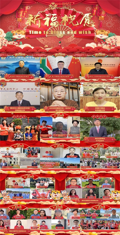 在“祈福祝愿”篇章,驻德班、开普敦、约翰内斯堡总领事,在南华人华侨、中资机构、孔子学院老师及留学生代表的拜年视频,传递着真挚的家国情怀,将节日气氛推向高潮。