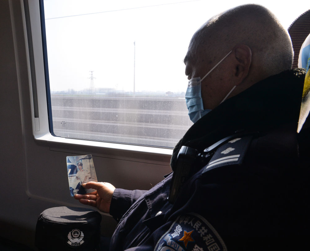 ↑2021年2月5日,在执行完任务乘坐的返程列车上,周彪拿出工作老照片回忆过往。