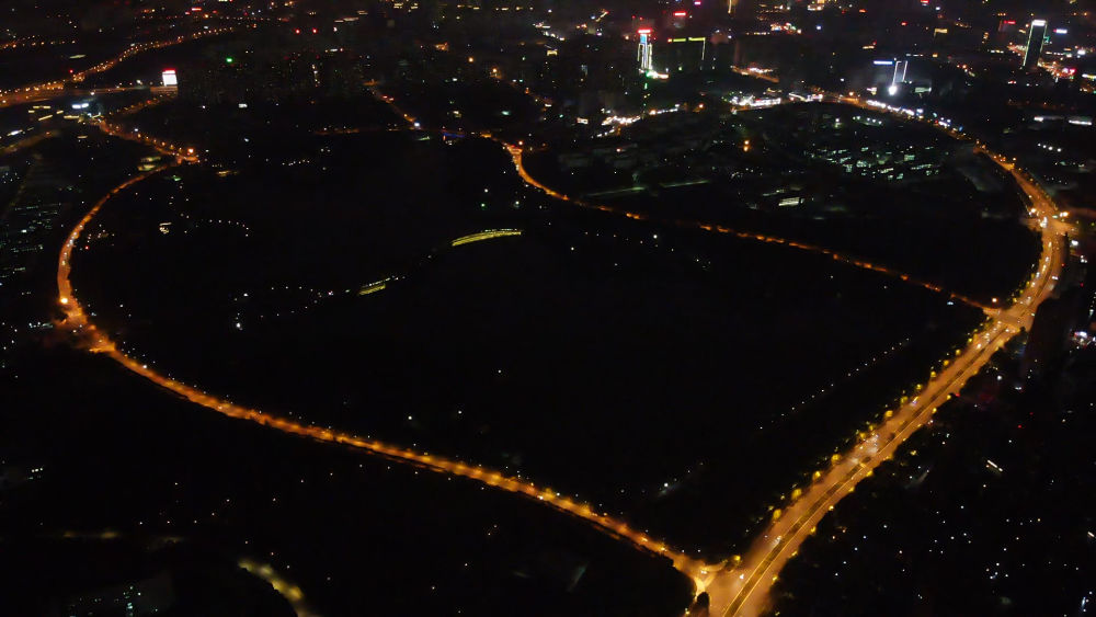 ↑2021年5月17日晚拍摄的合肥市蜀山区的“心形公路”。