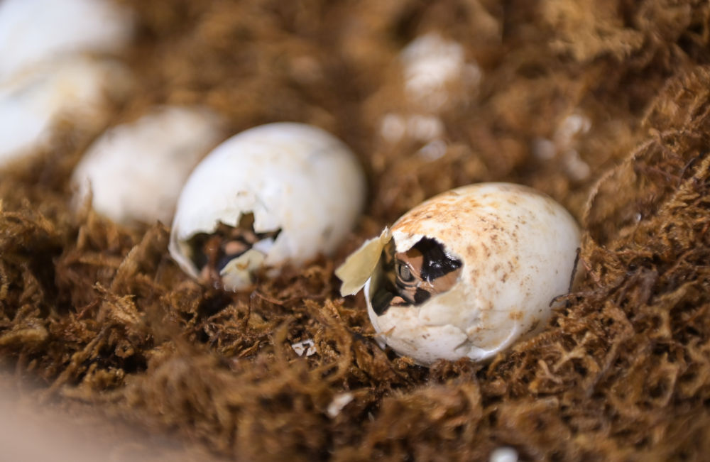 ↑2021年8月31日在安徽扬子鳄国家级自然保护区孵育中心拍摄的孵化中的扬子鳄鳄卵。