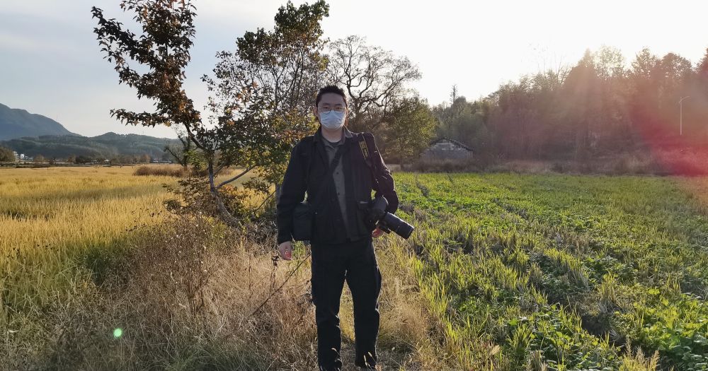 ↑2021年11月11日,韩旭在安徽黟县塔川村附近采访。