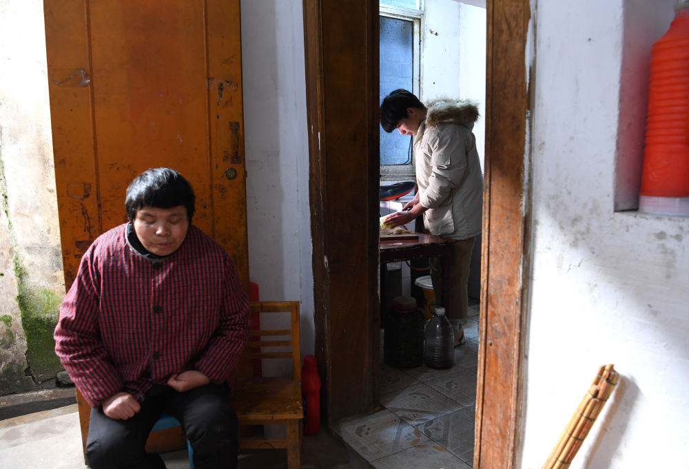 ↑2021年1月24日,程保留在厨房里准备午餐。