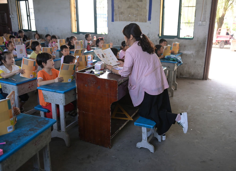 ↑2021年9月7日,李元芳在自习课上带领孩子们温习知识。