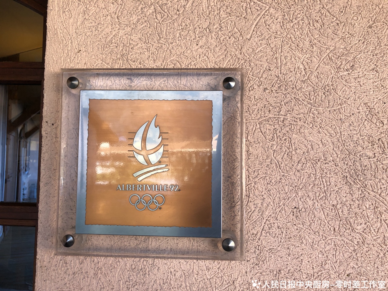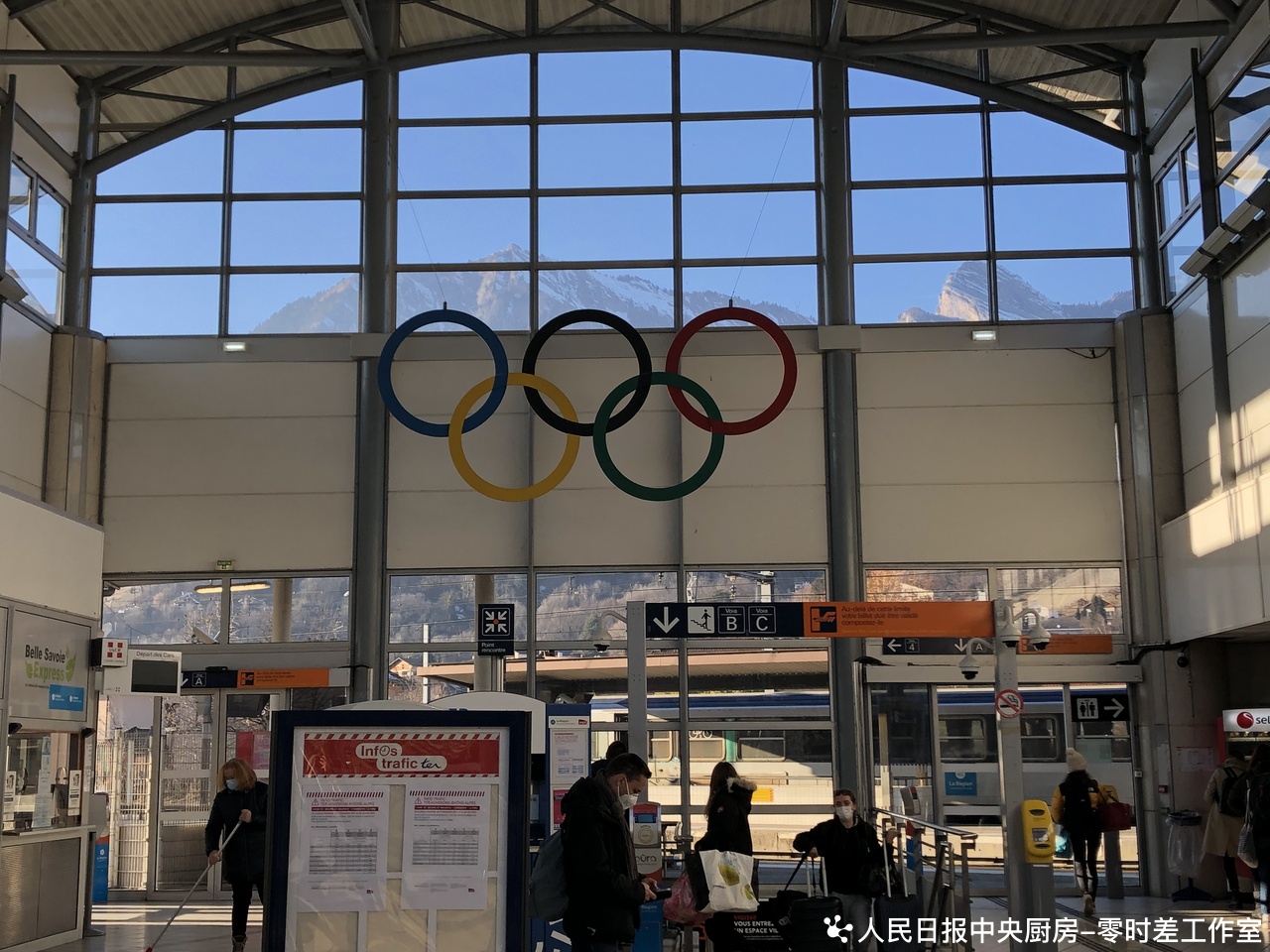 阿尔贝维尔火车站内的奥运五环标志。