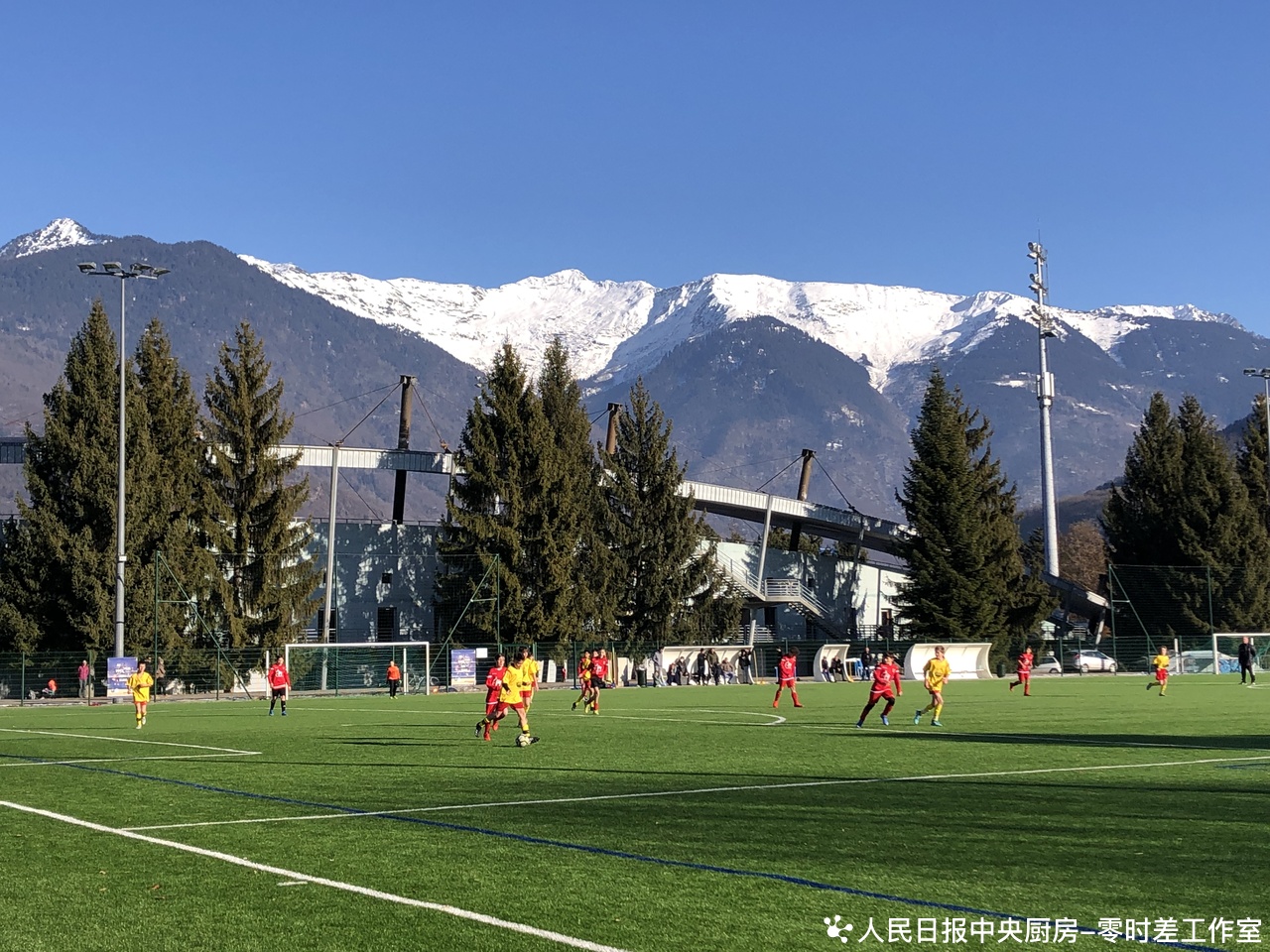 奥林匹克公园内,孩子们正在踢足球。
