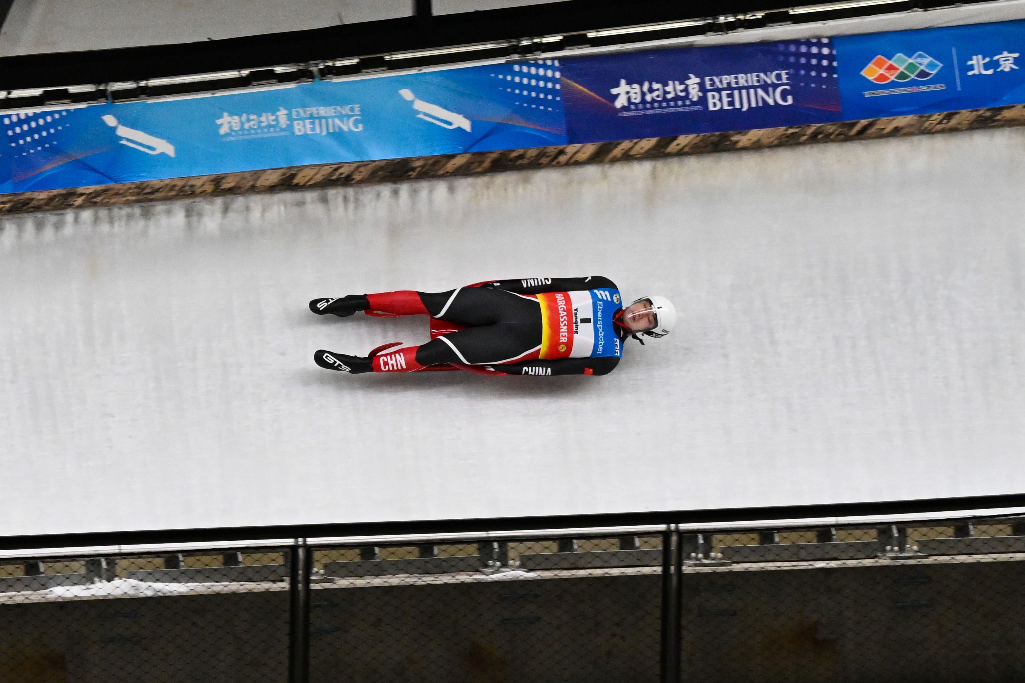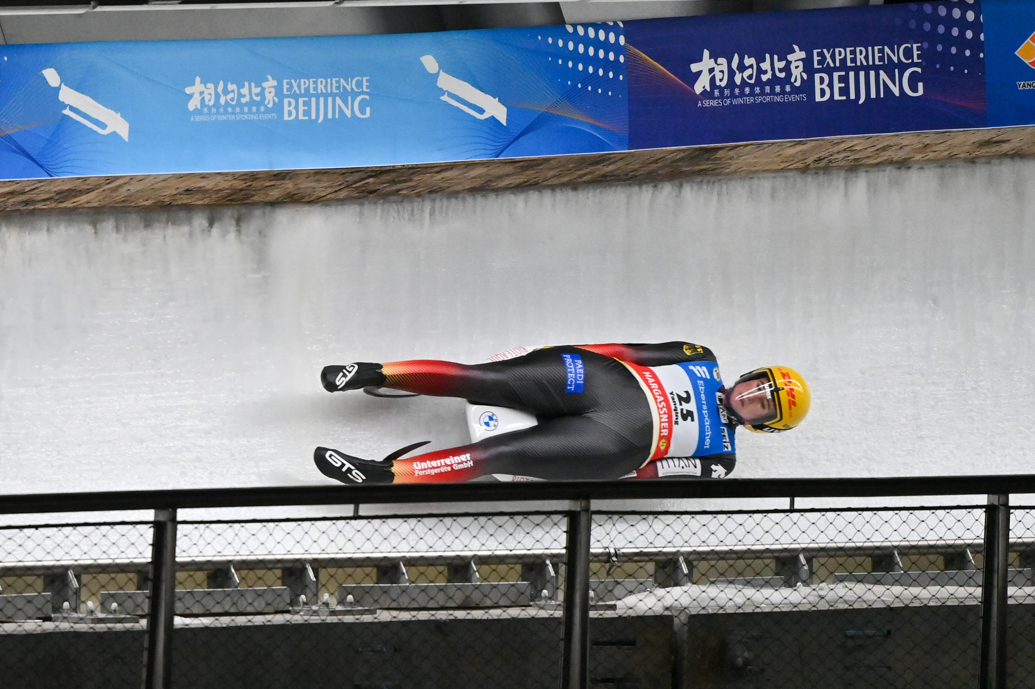 2021年11月21日,“相约北京”2021/2022国际雪橇联合会雪橇世界杯,德国选手娜塔莉·盖森贝伯格在女子单人雪橇比赛中。新华社记者陈益宸摄