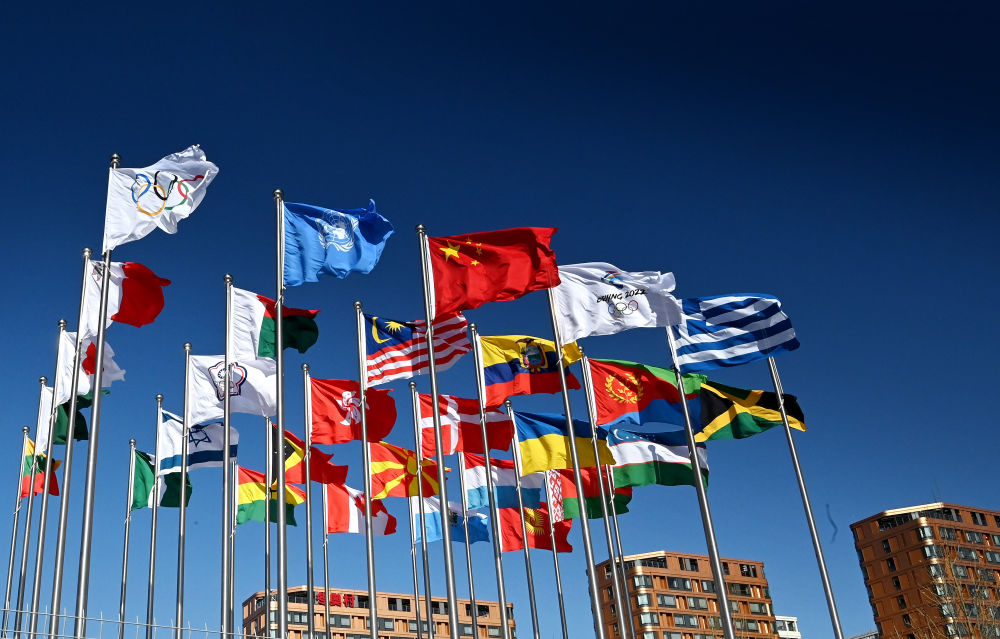 北京冬奥村旗帜广场。新华社记者李紫恒摄
