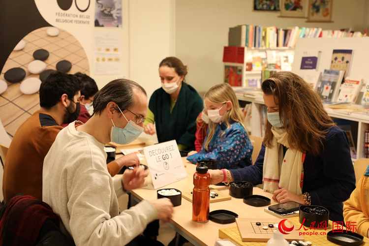 比利时观众体验围棋。人民网记者 张朋辉摄