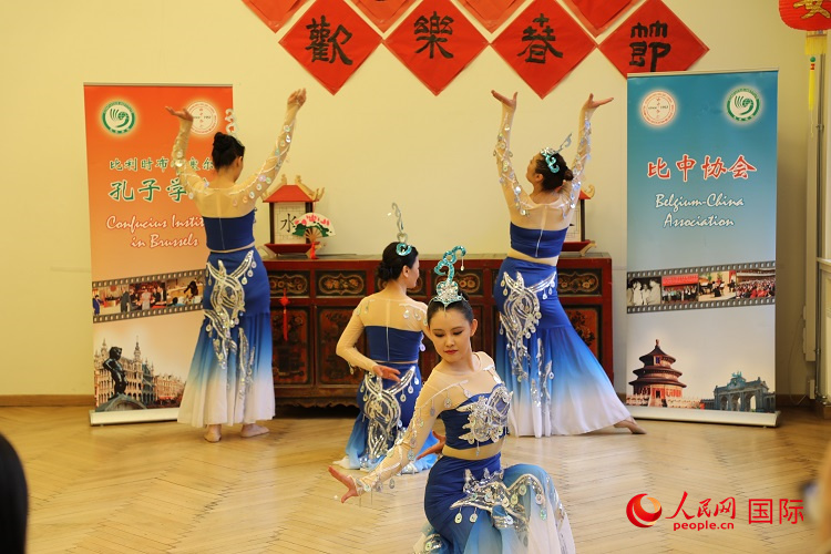 比利时中国舞团还为来宾们奉献了一场独具中国特色的民族舞蹈演出。