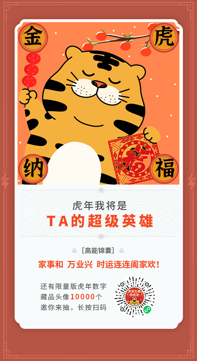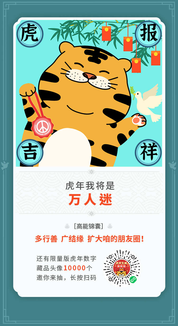 用户可以在活动期间内(1月31日一2月15日),微信搜索“虎虎生威换新装”进入「虎虎生威换新装」小程序即可参与活动。单张头像皆可独立保存、下载使用。