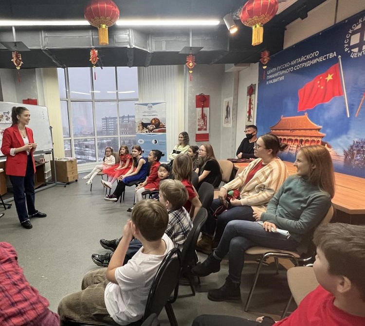 汉语教师达利亚向孩子们讲解春节传统习俗。中俄人文合作发展中心供图