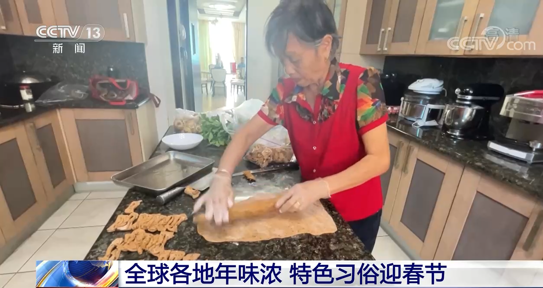 当地华侨:我祝大家像这个饺子一样,吃完这个饺子就家庭甜甜蜜蜜。春节快乐,恭喜发财!