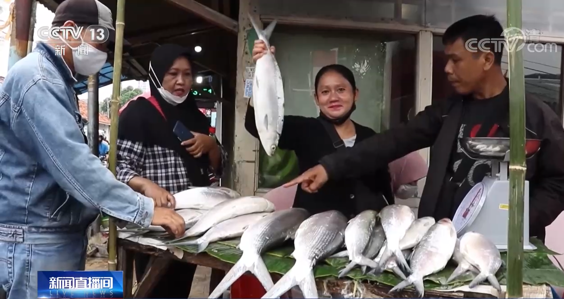 鱼市鱼贩 阿达:我每年这个时候有时赚1000万印尼盾(约合5000元人民币),有时赚900万印尼盾(约合4500元人民币),根据不同的情况而定。但确实是有钱赚的,我的目标就是全部卖掉。