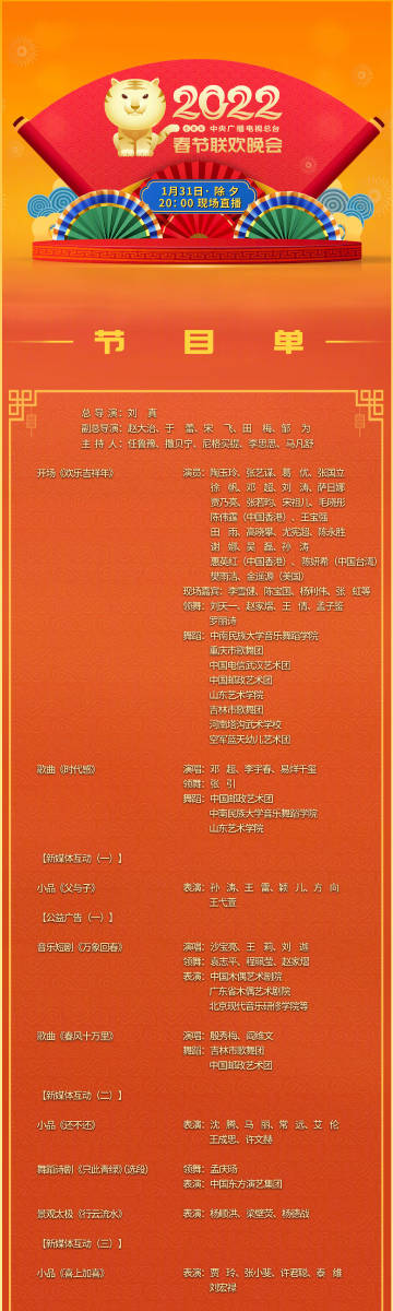 【#2022春晚节目单出炉#!】中央广播电视总台30日公布2022年春节联欢晚会节目单。2022年春晚聚焦奏响新征程上的迎春曲,坚持温暖热烈的主基调,艺术呈现上兼具中华文化底蕴和时代审美追求,注重科技与艺术的深度融合。快来先睹为快吧。