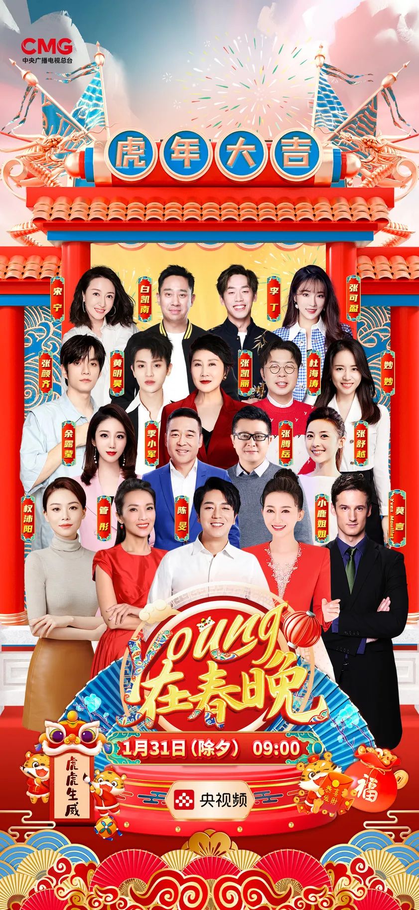 2022虎年春节来临之际,由央视频创新推出的除夕融媒体直播节目《Young在春晚》将于1月31日上午9:00开始,12+小时不间断陪伴全国网友过大年。总台主持人、文化专家、明星嘉宾将齐聚直播间,分享春晚记忆,科普年俗知识,挑战互动游戏,更有精彩歌舞、魔术、脱口秀节目轮番上演。欢乐互动层层升级,观众将“打破”小屏限制,真正成为直播节目中的一员,创意短视频、口播抽奖互动……全民融媒体大联欢即将“虎”力全开。