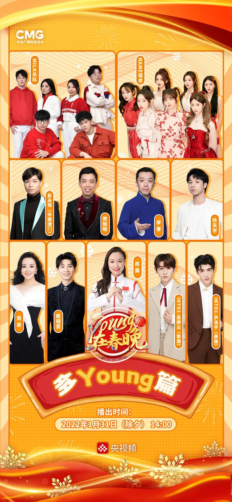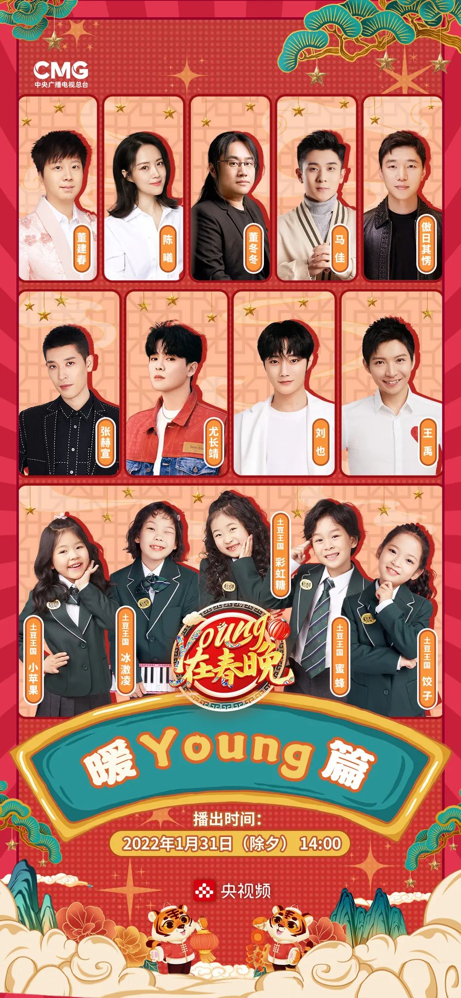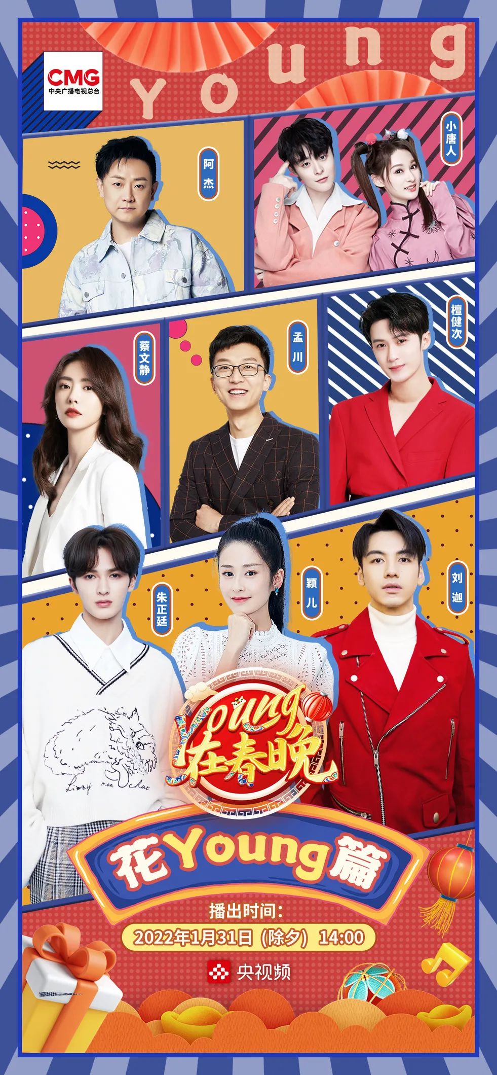 《Young在春晚》自然也少不了青春元素,下午14:00开始的互动板块将有多位演艺嘉宾参与,黄明昊、尤长靖、张赫宣、蔡文静、颖儿、刘迦、阿杰等众多歌手、演员将轮番登场。通过《花Young篇》《多Young篇》《暖Young篇》三个板块与观众一起“闹”新春。