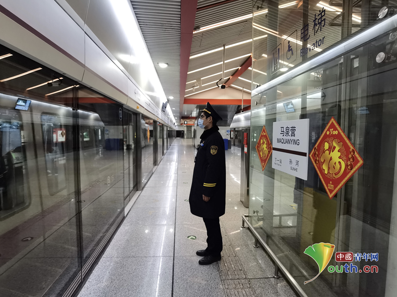 中国青年网北京1月30日电(记者 陈子君通讯员王蕊)随着春节脚步的临近,冬奥与春节双重喜庆氛围交汇,迸发出更耀眼的火花。北京地铁运营四分公司15号线马泉营站区的地铁工作人员身着新工作服,坚守岗位,在浓厚节庆氛围的车站中,监控疾驰的列车,迎接来往的乘客,以最佳状态做好春节及冬奥期间运输保障工作,为乘客提供优质服务,为安全运营保驾护航,以期乘客能获得更美好的出行体验。