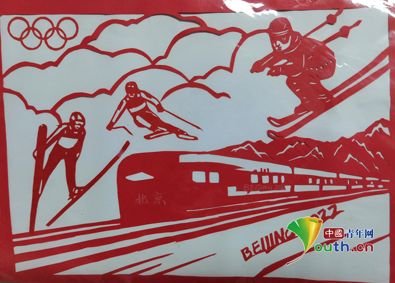 车站工作人员迎冬奥剪纸作品《BEIJING2022》。国展站供图