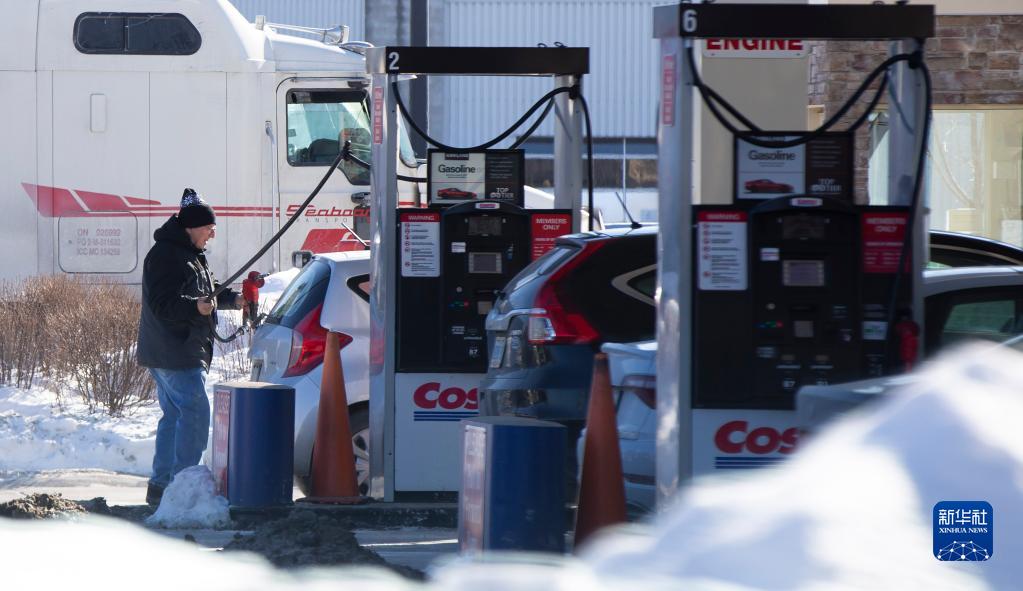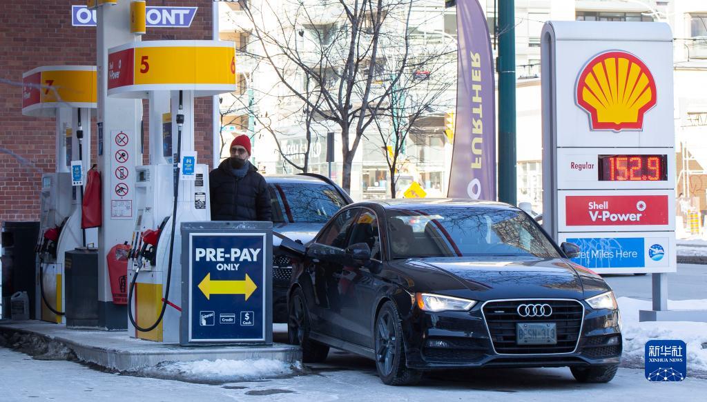 1月29日,在加拿大多伦多一处加油站,人们为汽车加油。