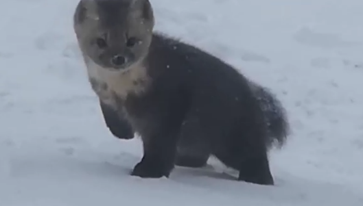 ·萌化了!黑龙江亚雪公路现紫貂觅食,时而蹦跳前行时而雪地中发呆。