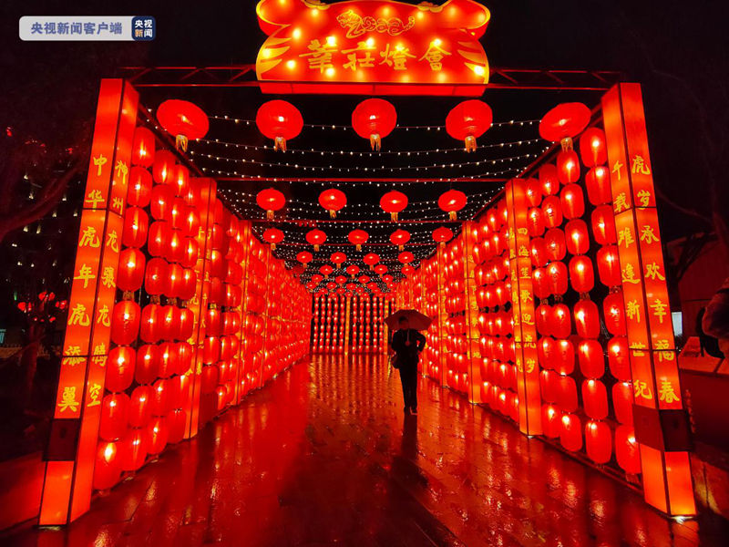 上海莘庄的新春花灯亮相,各类主题灯组,造型各异,充满着虎年的喜庆氛围。