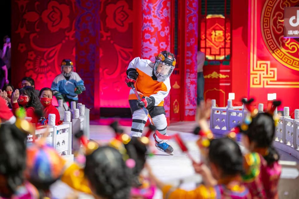 在《辽视春晚》的舞台上,花样滑冰、冰球、艺术体操、拉丁舞、武术、滑板等运动项目相继登场,曾两次获得世界短道速滑锦标赛男子500米金牌的梁文豪也参与了录制。整个舞台营造出喜迎冬奥的浓厚氛围,激发了广大观众对冬奥的热情和期待。