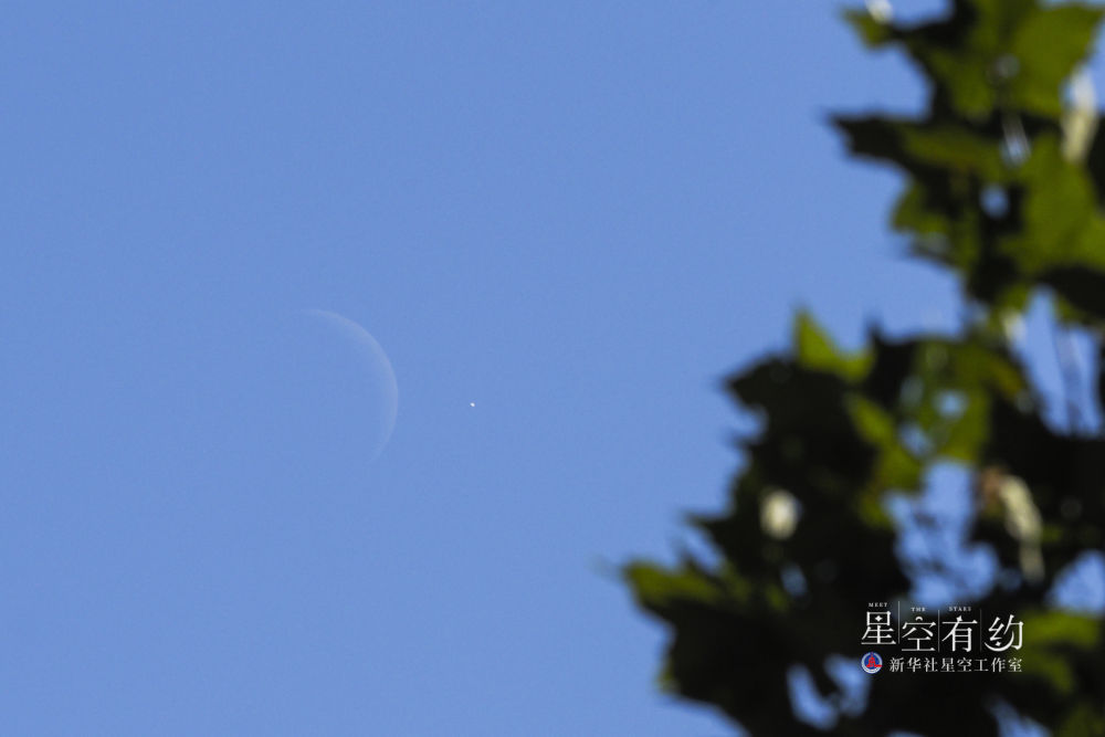北京市天文爱好者王俊峰2021年11月8日中午在北京拍摄的金星合月。(本人供图)