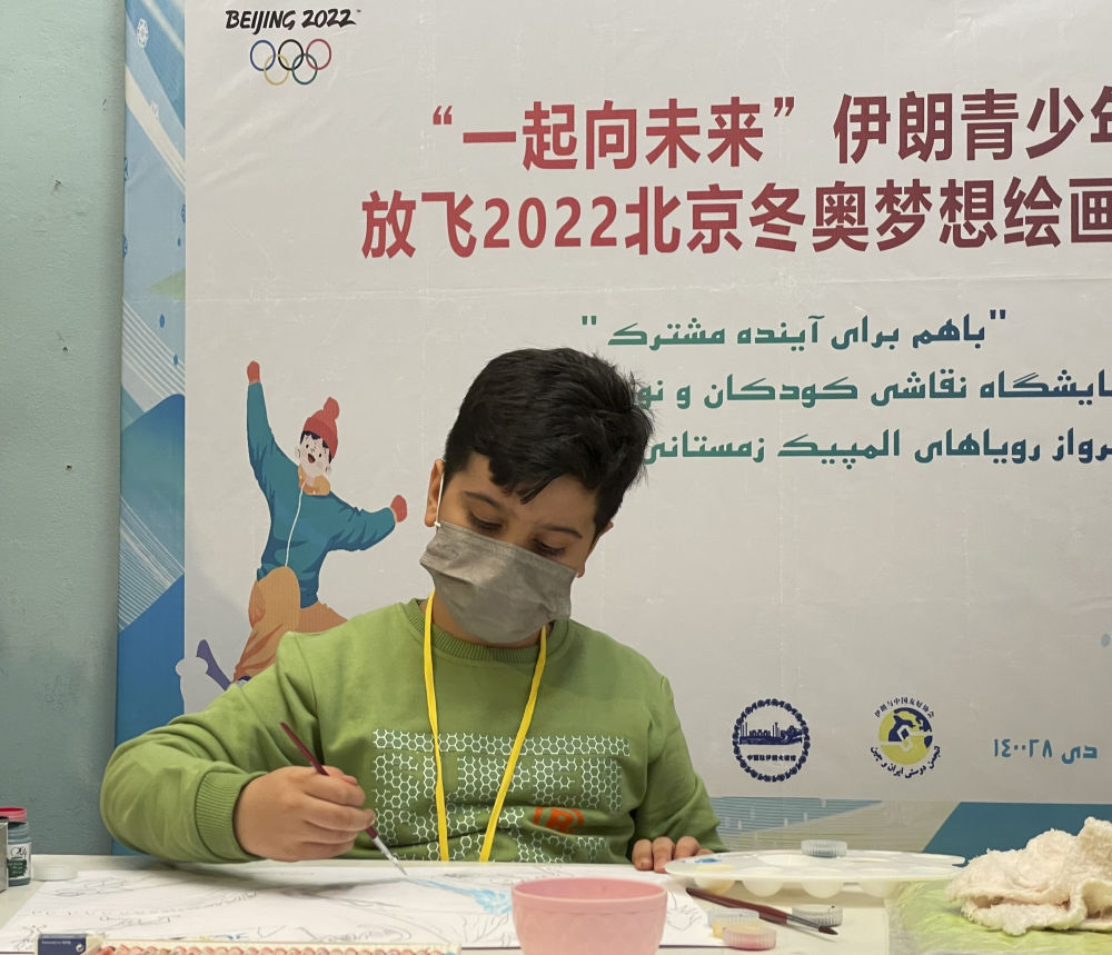 1月18日,“一起向未来”伊朗青少年放飞2022北京冬奥梦想绘画展在伊朗首都德黑兰举行,一名伊朗儿童为北京冬奥会作画。新华社记者 高文成 摄