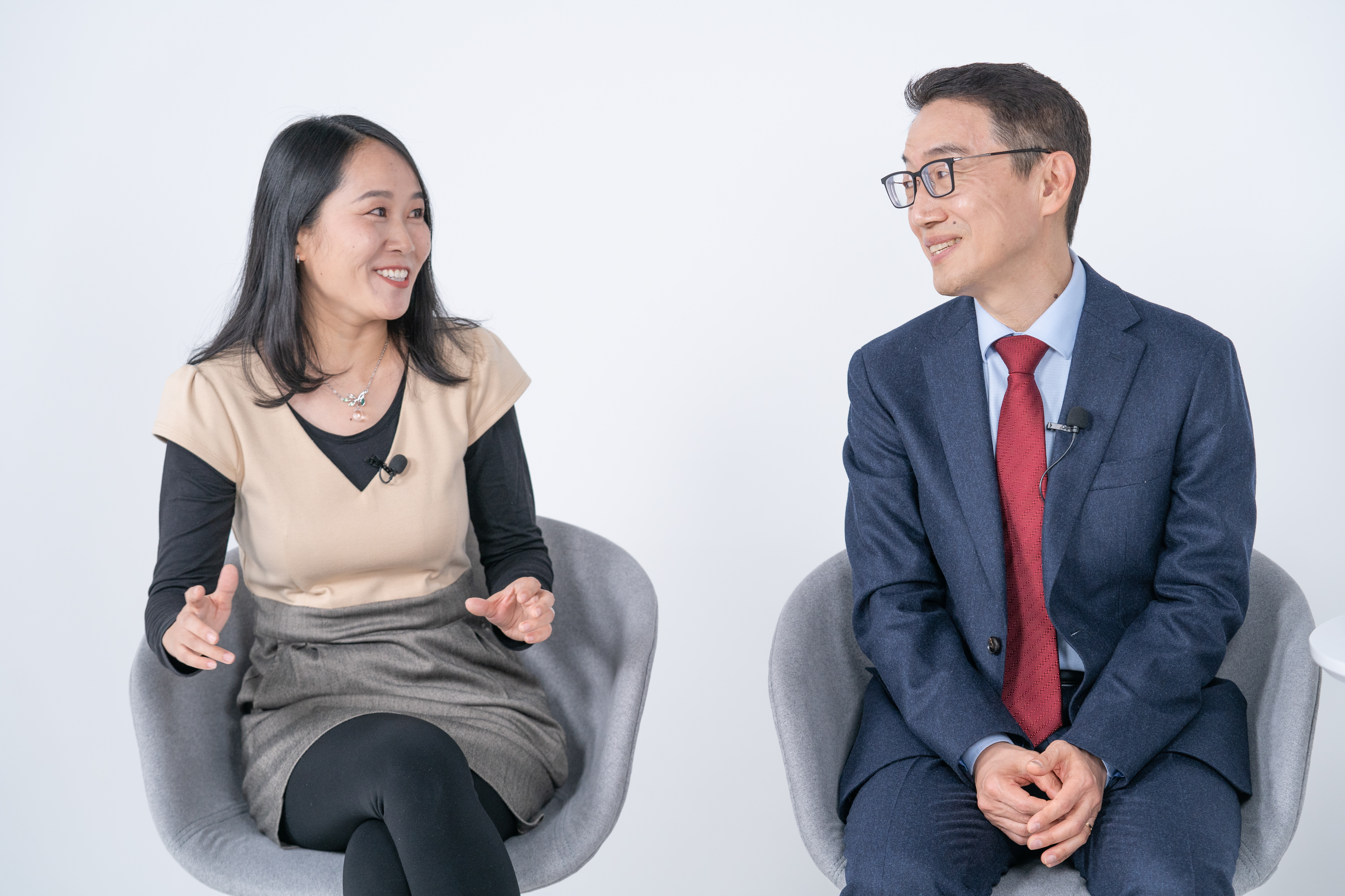图为专家在现场访谈照片。左一为北京师范大学学前教育研究所副教授李晓巍。