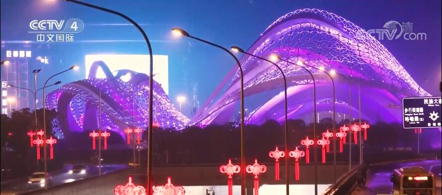 在湖北武汉165条城市道路和桥梁被2.3万多盏灯笼、中国结装点一新。