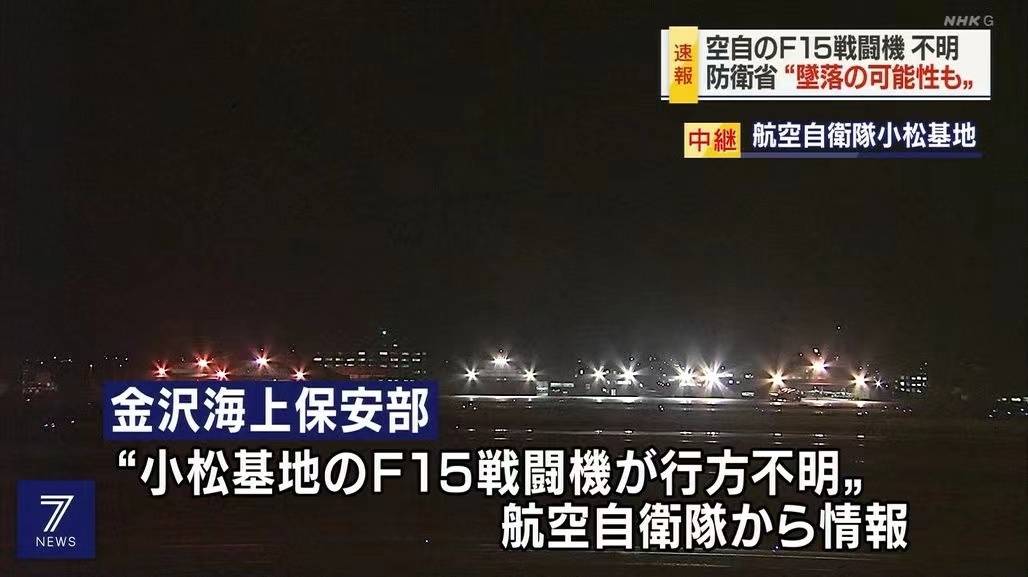 报道称,涉事飞机为航空自卫队小松基地所属的F-15战机,于距离基地约5公里的海面上丢失信号。该战机起飞时乘有两名飞行员。防卫省认为涉事战机可能发生坠落事故。