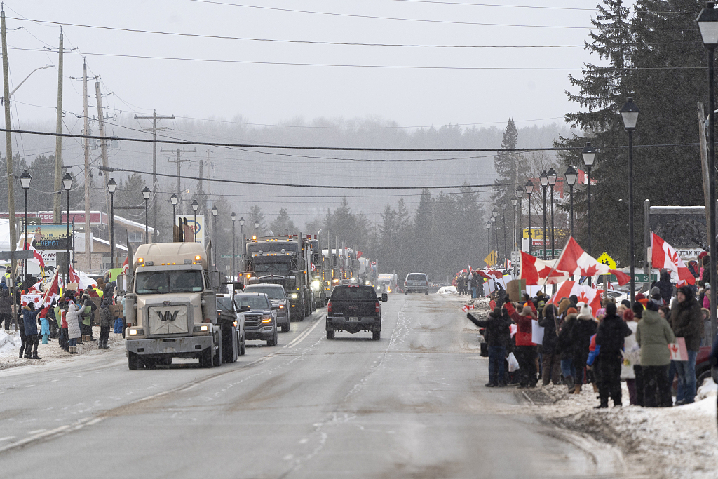 加拿大卡车司机抗议活动已进入第二天。据外媒此前报道,此次抗议与不满政府新冠疫苗强制接种令有关。(海外网 李萌)