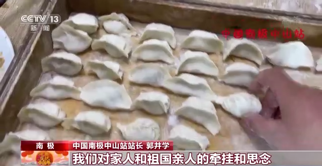 中国南极中山站站长 郭井学:虽然我们包的饺子,水平不是很高。大家包的饺子大小形状各异,但是饺子寄托了我们对家人和祖国亲人的牵挂和思念。