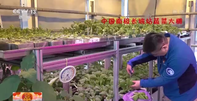 中国南极长城站厨师 张德余:这是我们刚刚从绿色大棚摘来的绿叶菜,再给兄弟们加个餐。