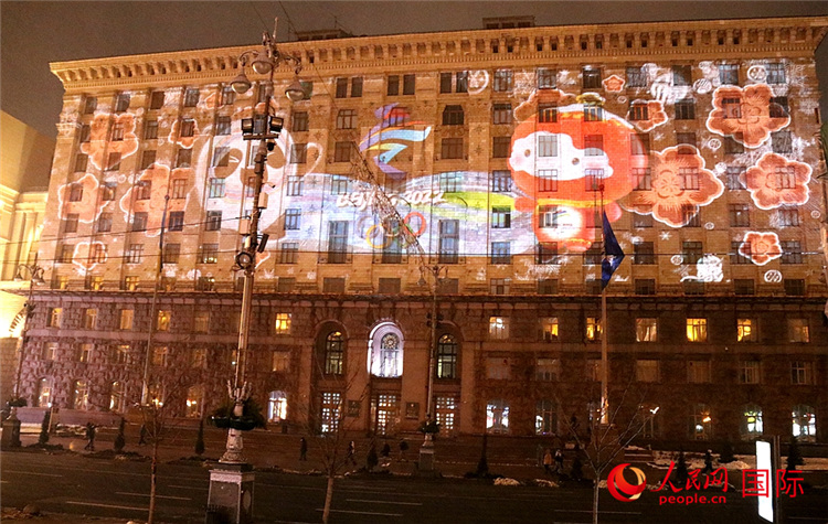 人民网基辅1月30日电 (记者谭武军)1月30日晚,由中国驻乌克兰使馆创意策划的“迎新春·庆冬奥”大型灯光秀,在基辅市中心的赫列夏季克大街精彩上演。