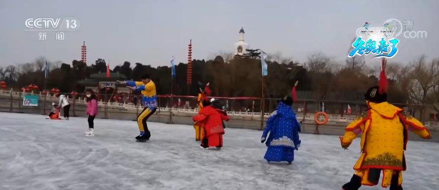 昔日举行清代冰嬉大典的北海冰面上,身穿传统服饰的孩子们,跟着教练学习冰嬉动作。从“跑冰”到“双飞燕”,一次次摔倒与尝试,也让兴趣的种子在心间生根发芽。