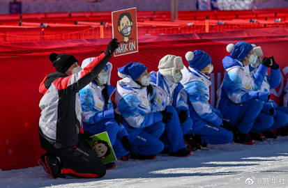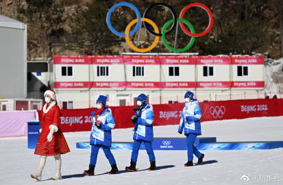 #相约北京圆梦冬奥#【#国家高山滑雪中心举行全要素演练#】农历大年初一,位于北京冬奥会延庆赛区的国家高山滑雪中心举行全要素演练,工作人员按照赛时模式,对转播、颁奖仪式、新闻发布会等各环节进行了预演。