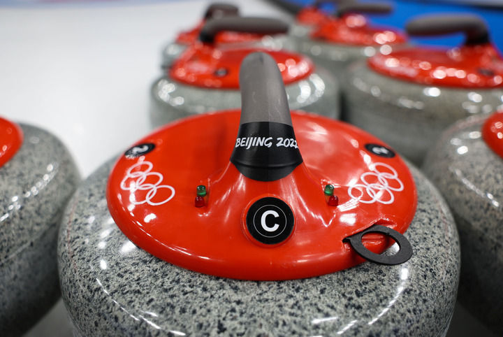 1月27日,在“冰立方”拍摄的比赛用冰壶。新华社记者王婧嫱摄