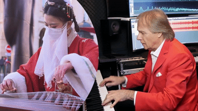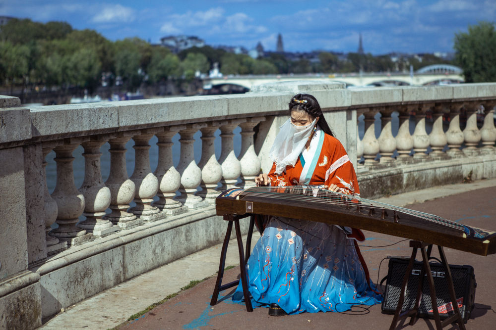 2021年9月,彭静旋在巴黎进行古筝演奏。(彭静旋供图)