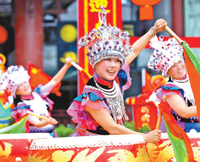 湖南张家界市武陵源区,当地群众表演民俗文化节目,迎宾客、庆新春。吴勇兵摄(人民视觉)