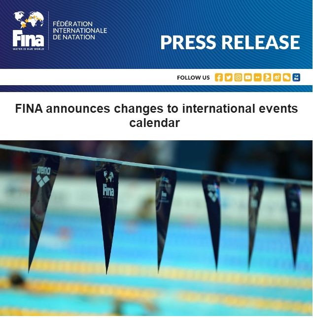 国际泳联将于近期公布国际泳联代表大会、国际泳联技术大会和第19届国际泳联世界大师锦标赛的修订日期,以及更新后的2022年国际比赛日程。