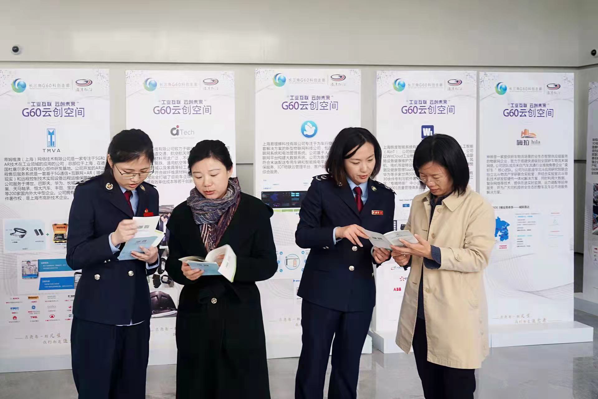图为税务工作人员在松江新城G60云创空间开展税收宣传。采访对象供图