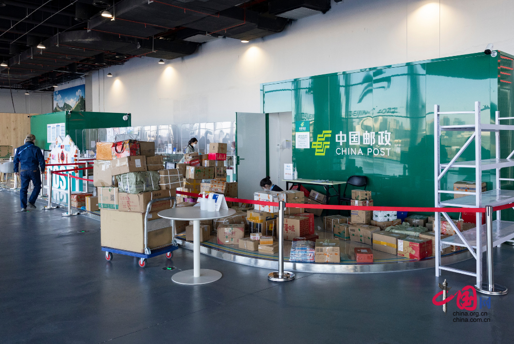 作为世界各国记者的"媒体之家",主媒体中心不仅面积大,而且功能多。便利的邮政服务让世界各地包裹也能在这里集散,在闭环管理的冬奥会场,服务"不闭环"。