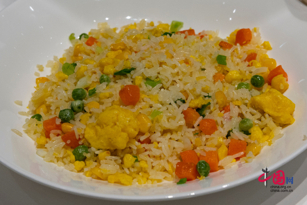 春节期间,媒体餐厅精心准备的蛋炒饭。人民画报社陈建摄影