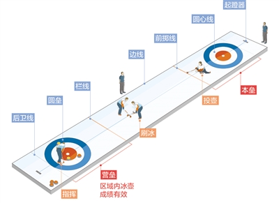 冬奥会冰壶比赛,每队上场4人,分为一至四垒,每局双方交叉投壶16次。运动员不仅要使冰壶准确到达营垒圆心,同时还要让对方的冰壶远离圆心,以冰壶距离圆心远近决定得分。一场比赛共10局,总分高者获胜。混合双人比赛,每队由男、女各1名运动员组成,共进行8局比赛。每局比赛,每队共投出5只冰壶,投第一壶的队员必须投最后一壶,另一名队员投第二、三、四壶。打平则进行加赛局。