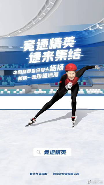 #中国队首个冲金点#【和中国冬奥首金得主来场#短道速滑热身赛#】距离北京冬奥开幕式还有1天!2月5日,短道速滑项目将是中国代表团首个冲金点!新华社北京冬奥会报道团“竞速精英”短道速滑互动小程序已上线,快和中国冬奥首金得主@大杨扬 来场热身赛,与亿万精英上冰雪!