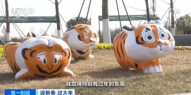夜晚,流光溢彩的新春花灯在西安昆明池七夕公园华丽绽放,为景区增添了不少喜气,花灯当中的虎元素无不彰显着虎年的到来。而公园里各种表情的卡通老虎也深受游客喜爱,大家纷纷打卡拍照。