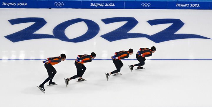 1月28日,荷兰速度滑冰运动员在“冰丝带”训练。新华社记者王建威摄