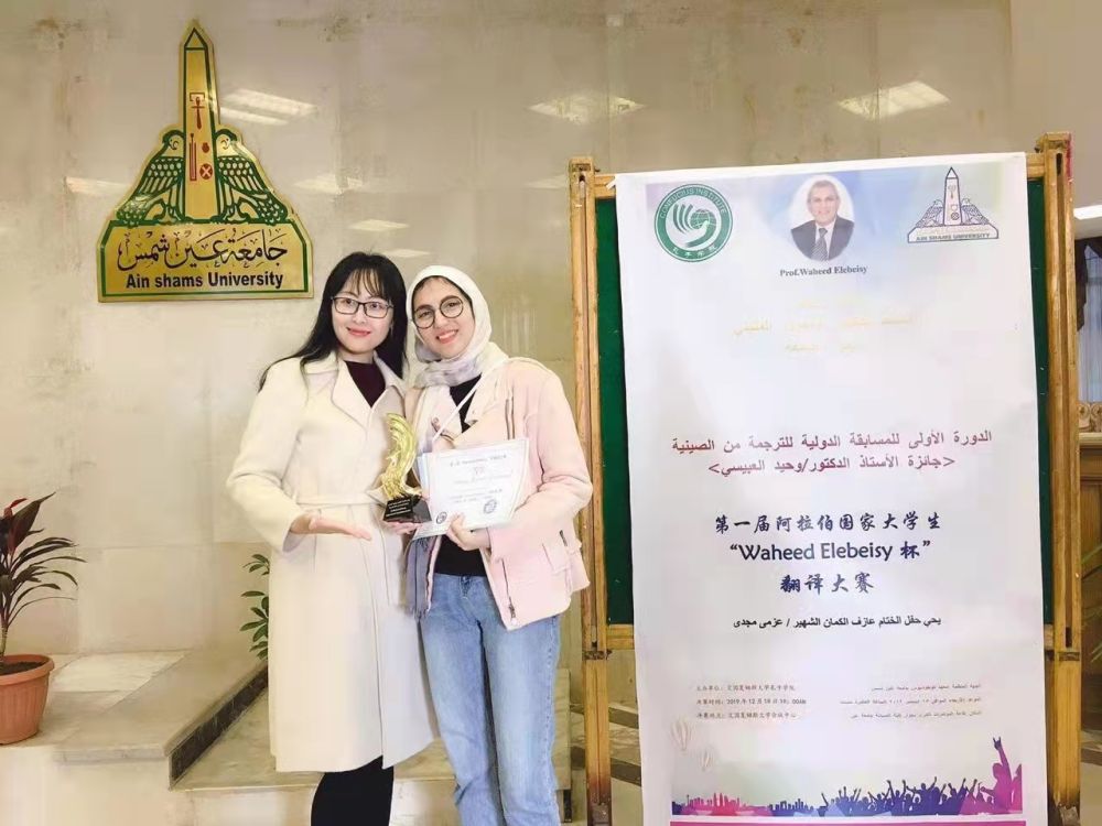 艾丽(右)参加第一届阿拉伯国家大学生翻译大赛。(艾丽供图)
