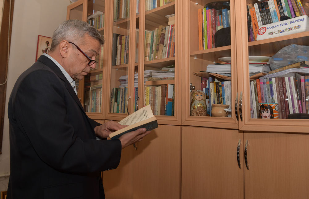 伊斯坦布尔大学汉语系教授阿尤布·撒勒塔史在办公室查阅资料。(新华社记者沙达提摄)